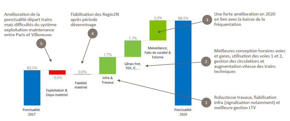 - Des problèmes de non qualité constructeur et des incidents traditionnels de déverminage en 2018-2019 et une fiabilité qui progresse sensiblement en 2020, avec 25% de pannes en moins par rapport à 2019.